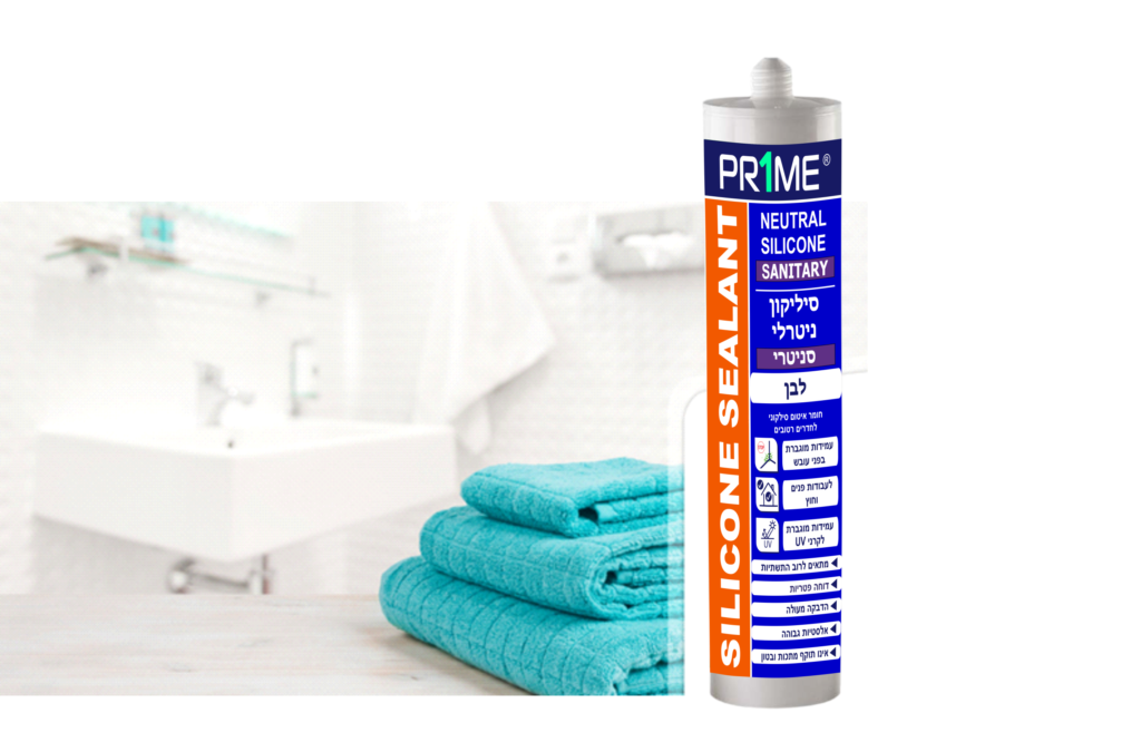 - PRIME® Silicone Sanitary – סיליקון ניטרלי + סניטרי: מצוין לאיטום במקלחות וחדרים רטובים, דוחה עובש ופטריות. מגיע באריזות 300 מ"ל, בצבע לבן.